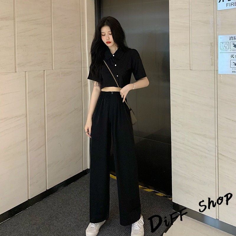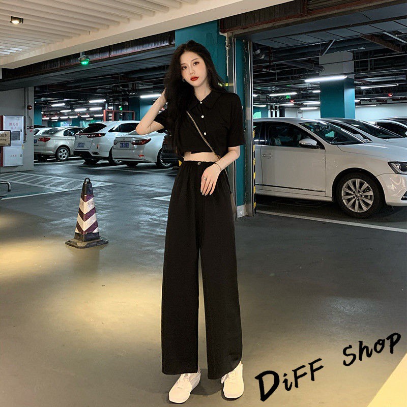 【DIFF】韓版氣質小個子顯瘦短版上衣+寬褲 兩件套裝 短袖上衣 短袖t恤 褲子 長褲 休閒褲【S120】