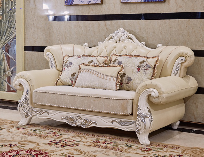 3 2 1 Seater Leather Sofa Set Living Room Furniture Antique Solid wooden Carved Frame 7 seater sofa
