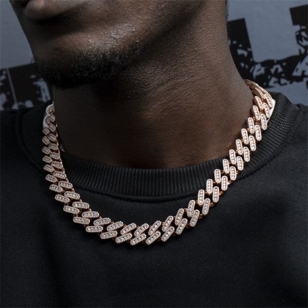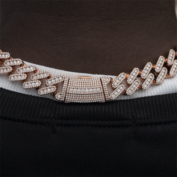 925 Sterling Silver Vermeil VVS Diamond Necklaces 15mm Moissanite Paved Prong Cuban Chain Iced Out D