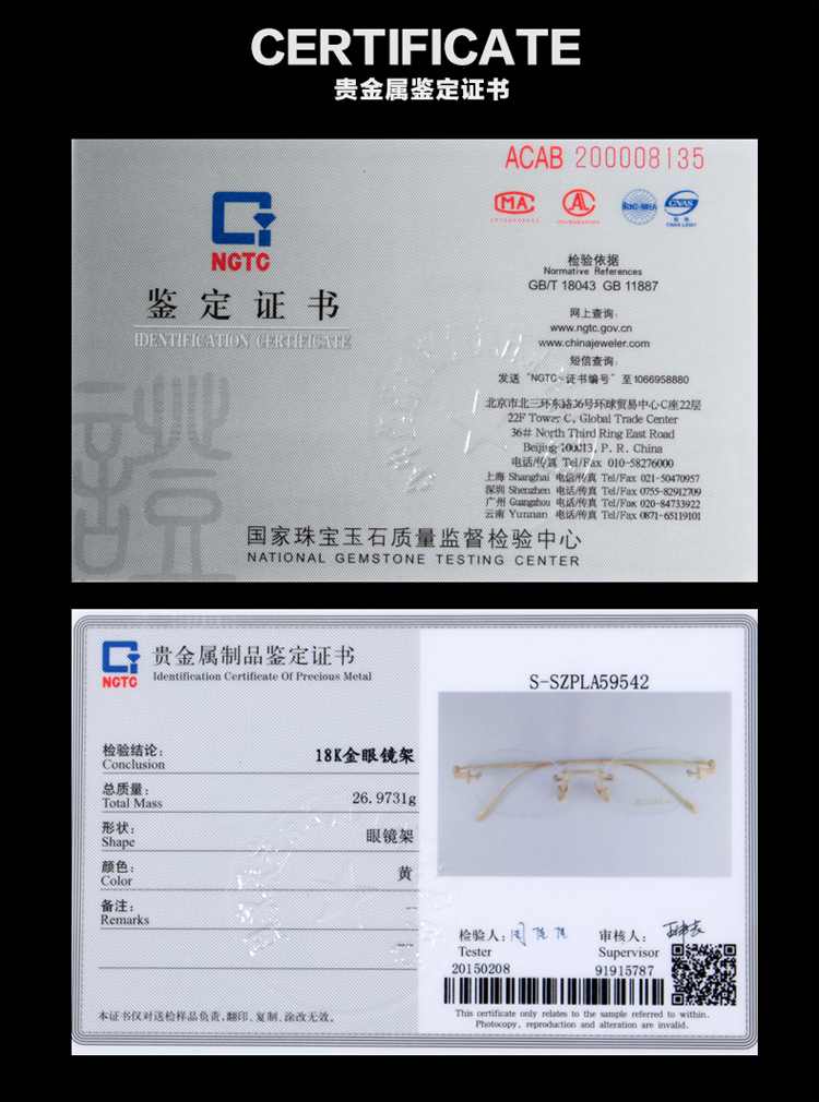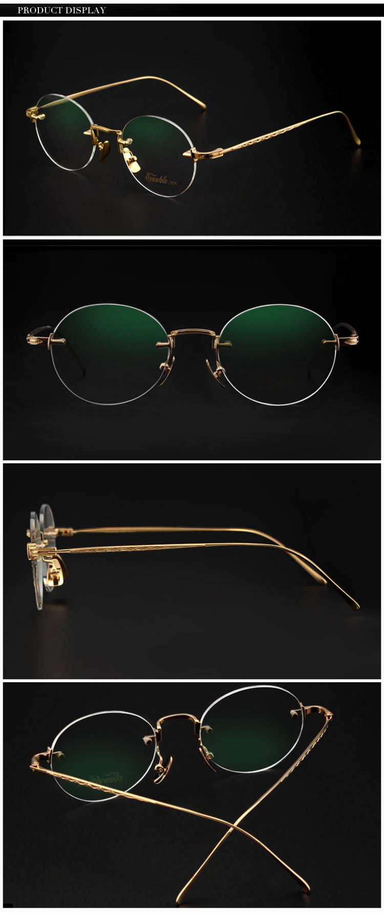 Custom 18K Gold Round Glasses Frame Unisex Business Casual Eyewear Frames EH009