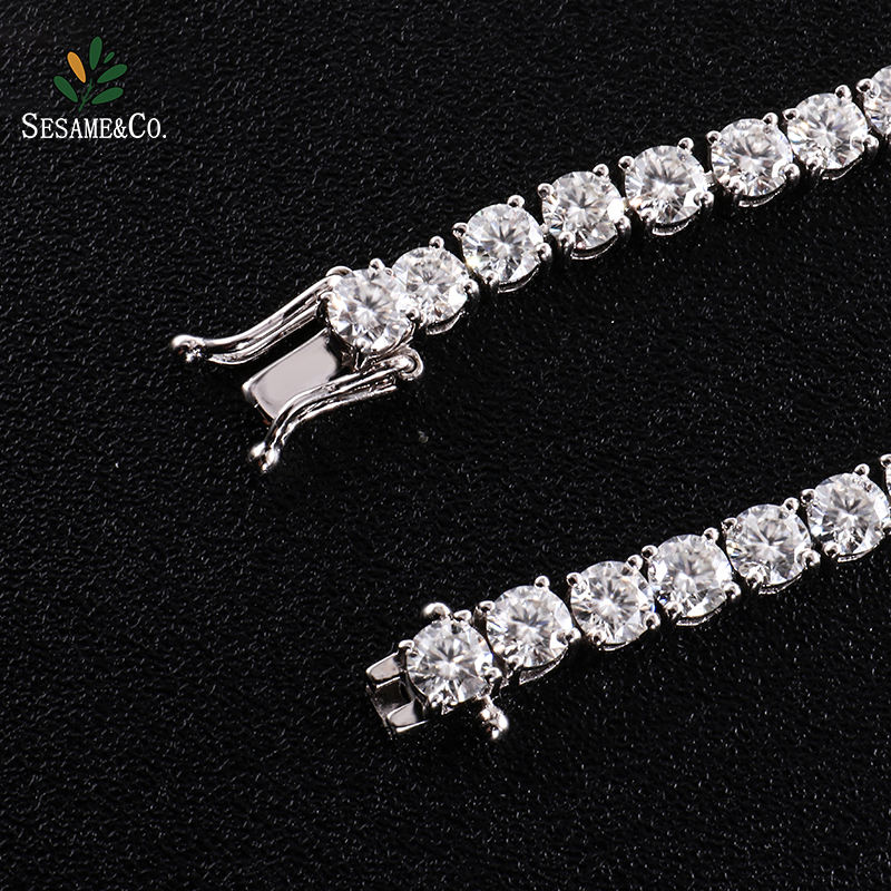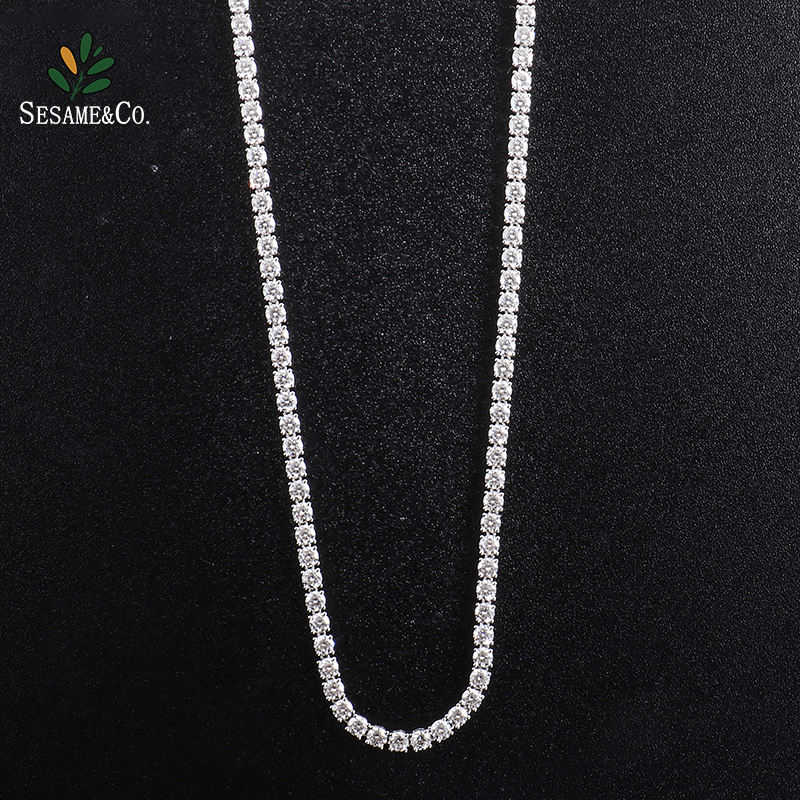 Custom Fashion Jewelry 22Inches DEF 3MM Round Moissanite Tennis Chain in Silver/10K/14K Prong Settin