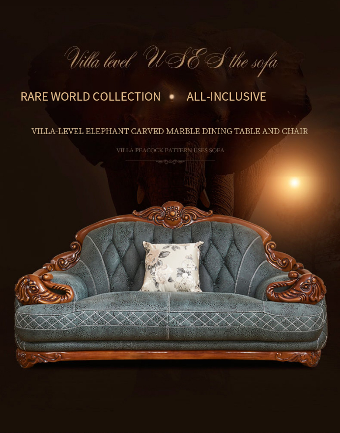 European-style sofa large apartment villa living room solid wood carved cowhide American sofa 123 co