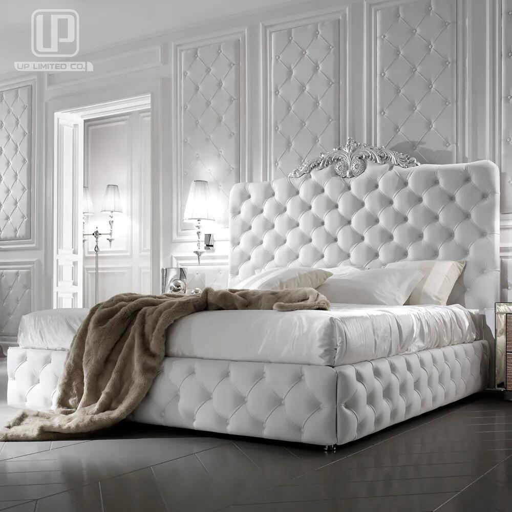 Exclusive Italian bed for designer White Leather Bed Classic bedroom furniture