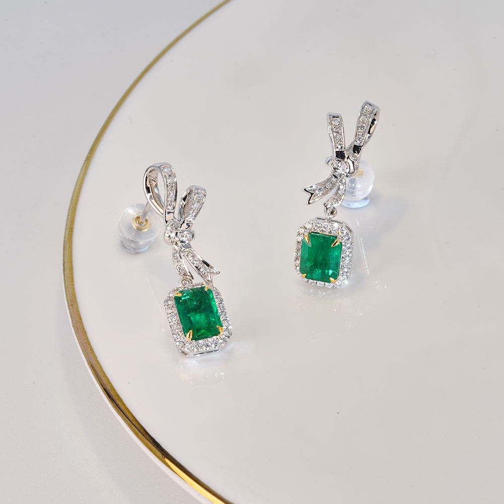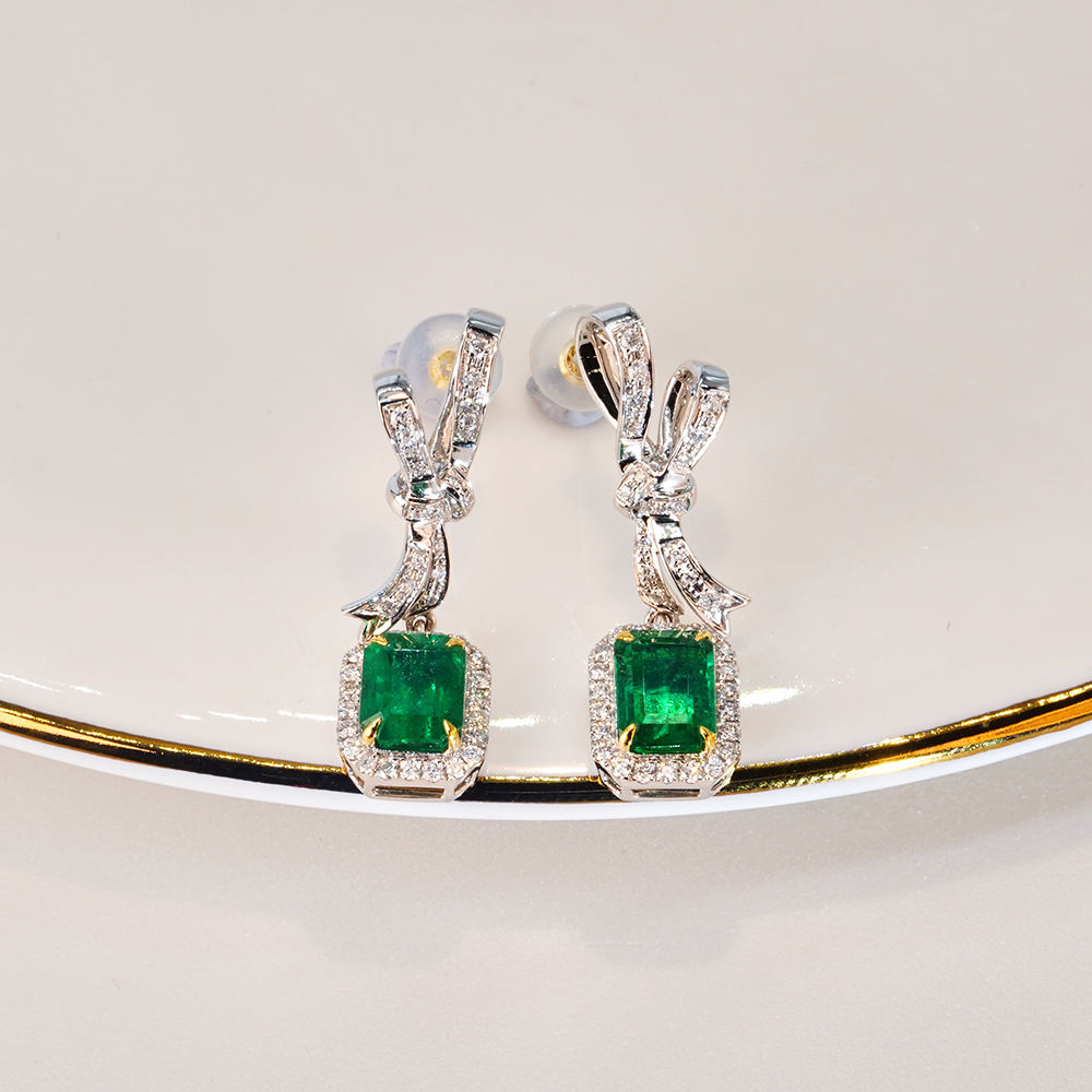 Genuine Gemstone Jewelry For Ladies 18K White Gold Drop Earring Natural Emerald Fine Jewelry Earring