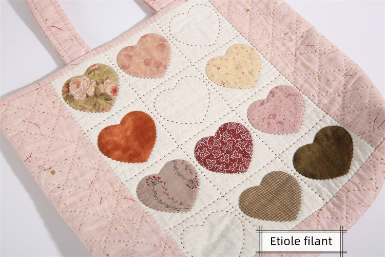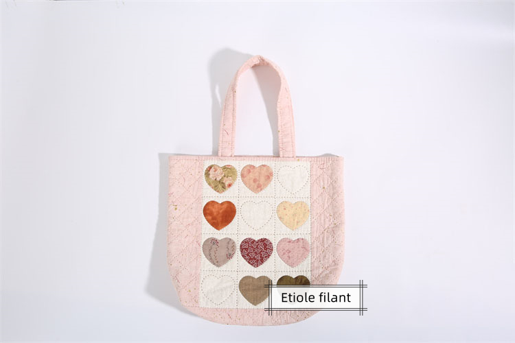 The love shoulder bag sewn with patch, simple style, cheerful color, the bottom of the bag is designed with a wide bottom to increase the storage capacity.