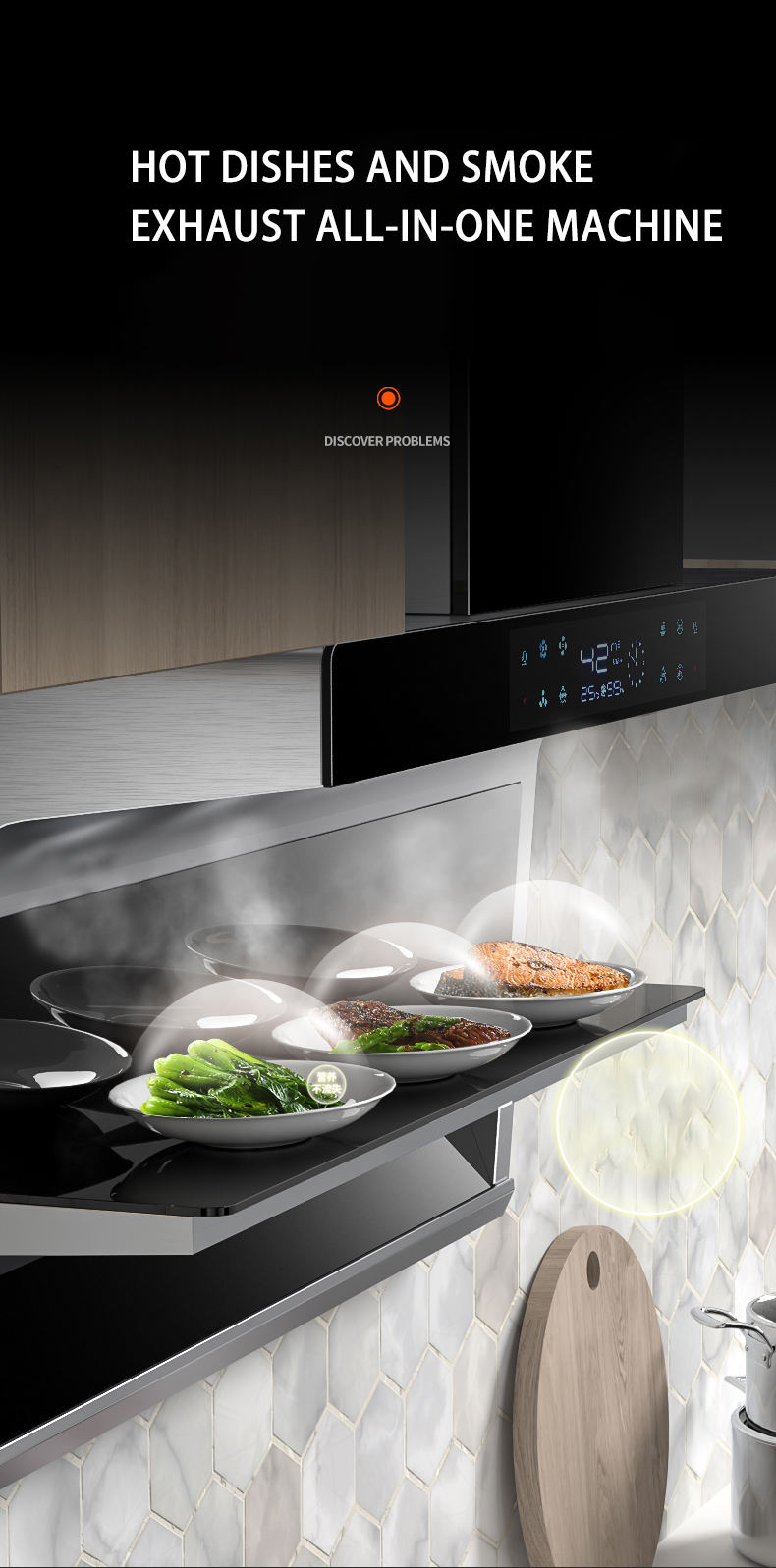 Home appliance kitchen Large suction top side double suction range hood 7-shaped