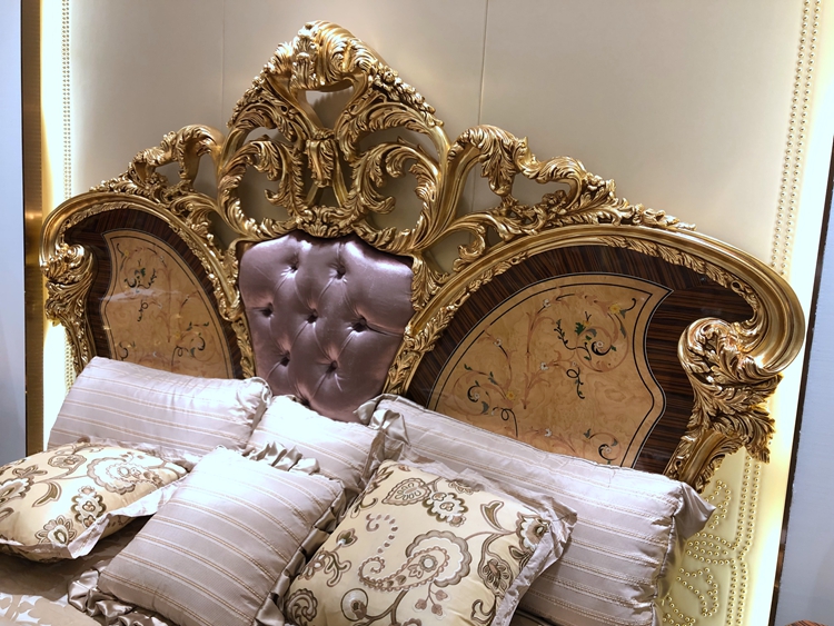 Royal baroque style solid wood expensive high gloss italian names bedroom furniture