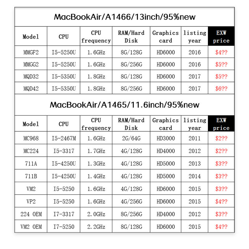 More information please contact us. (We also have others brand, HP, DELL, Lenovo, Toshiba, Fujitsu, NEC.macbook Please contact us for