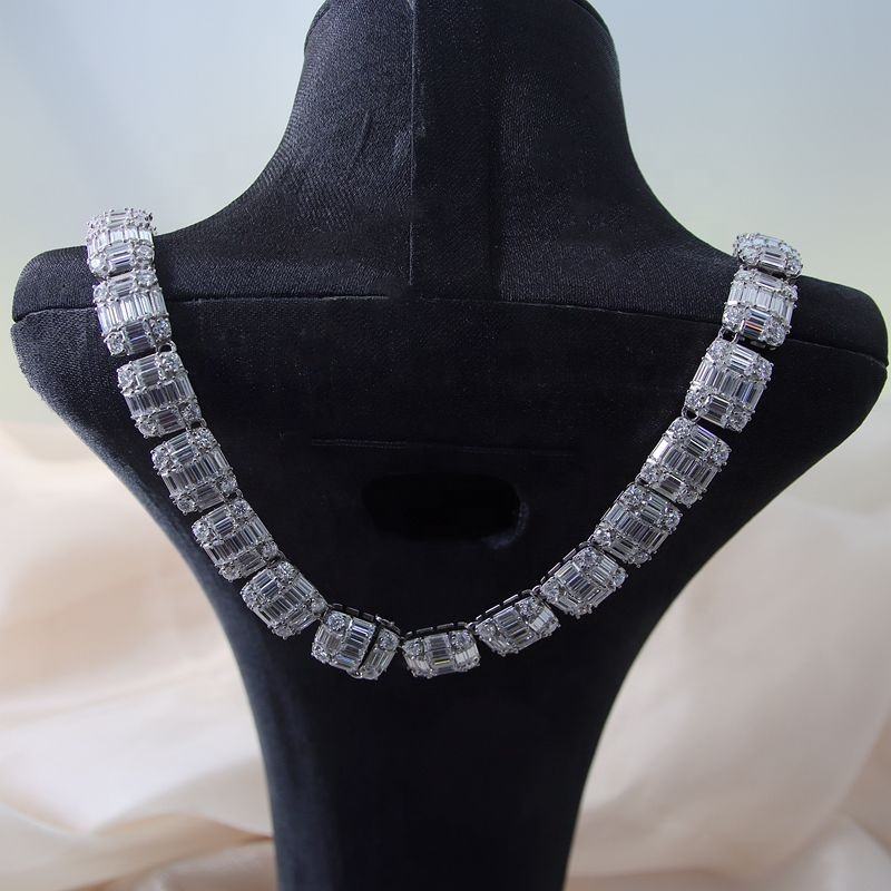 Sterling Silver925 Hip Hop Jewelry 9.5mm Width Full Setting Iced Out Baguette Moissanite Cuban Neckl