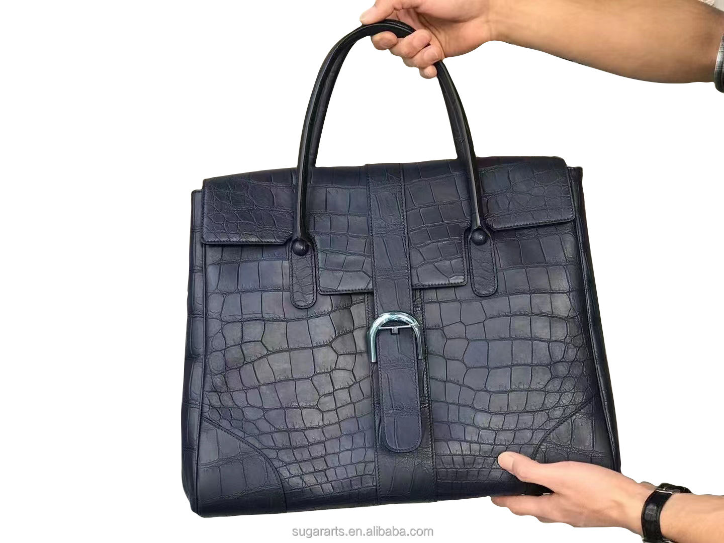 The new fashion travel bag high-capacity neutral gender bags Navy blue mixed crocodile embossed bag