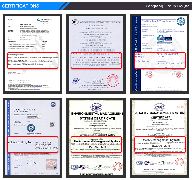 A4: The main material of outdoor playground is galvanized pipe and plastic part, for the plastic part, we use imported LLDPE