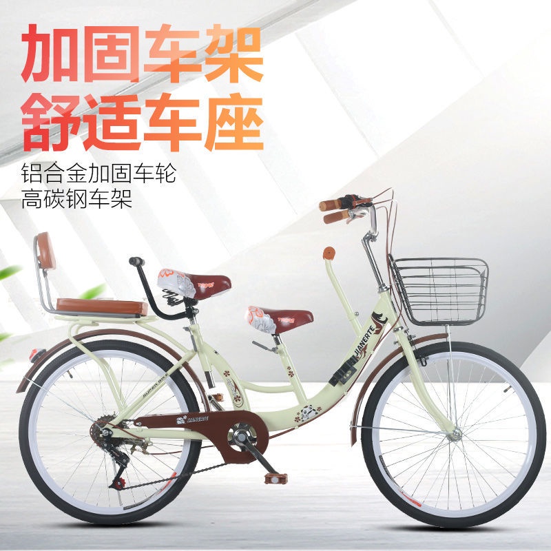 (in Stock) Parent-Child Bicycle Female Adult with Kid Children Solid Tire Bicycle 22/24-Inch Adult Pick-up Child Mother and Child Car