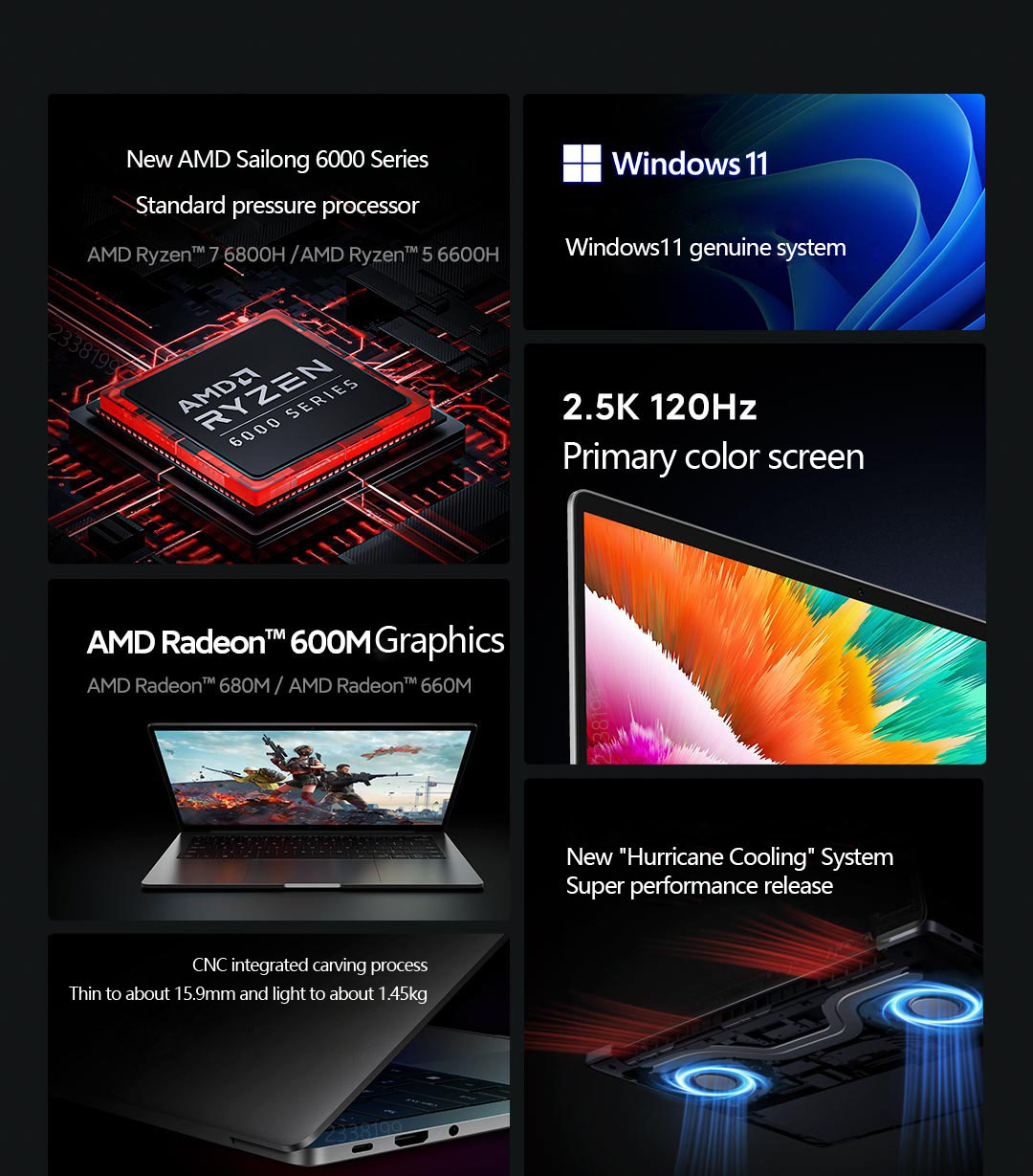 2022 New Xiaomi RedmiBook Laptop Pro 14 Inch AMD R5 6600H/R7 6800H 2560x1600 Screen 100W GaN Fast Ch