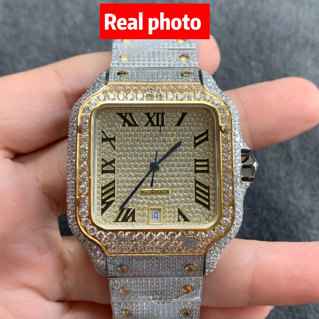 2022 Wristwatch Manufacturers Hip Hop Luxury Fashion Square Dial Iced Out Moissanite Bezel Watches F