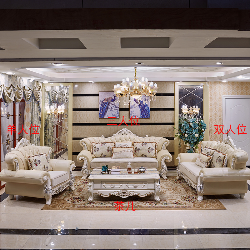 3 2 1 Seater Leather Sofa Set Living Room Furniture Antique Solid wooden Carved Frame 7 seater sofa