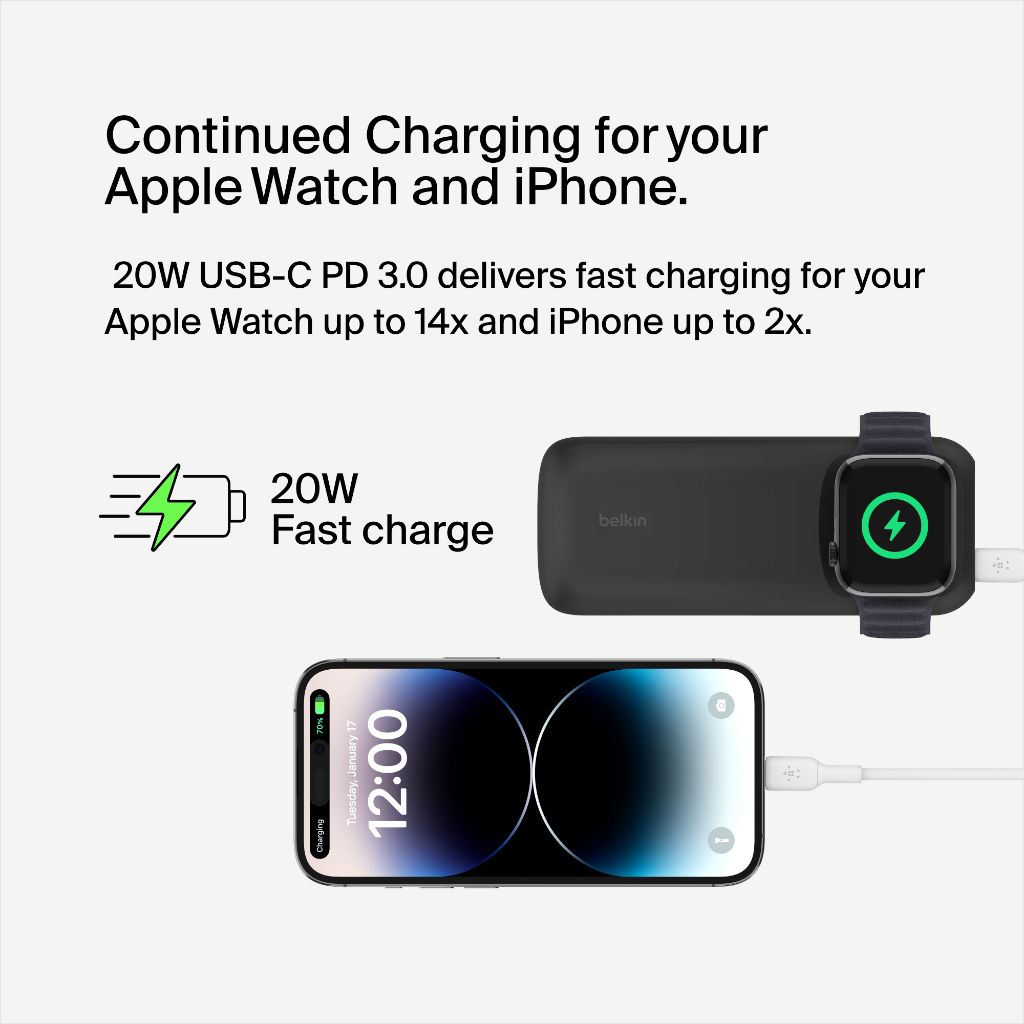 Belkin BPD005btBK BoostCharge Pro Fast Wireless Charger for Apple Watch+Power Bank 10K (airpods pro,phone,USB-C device)