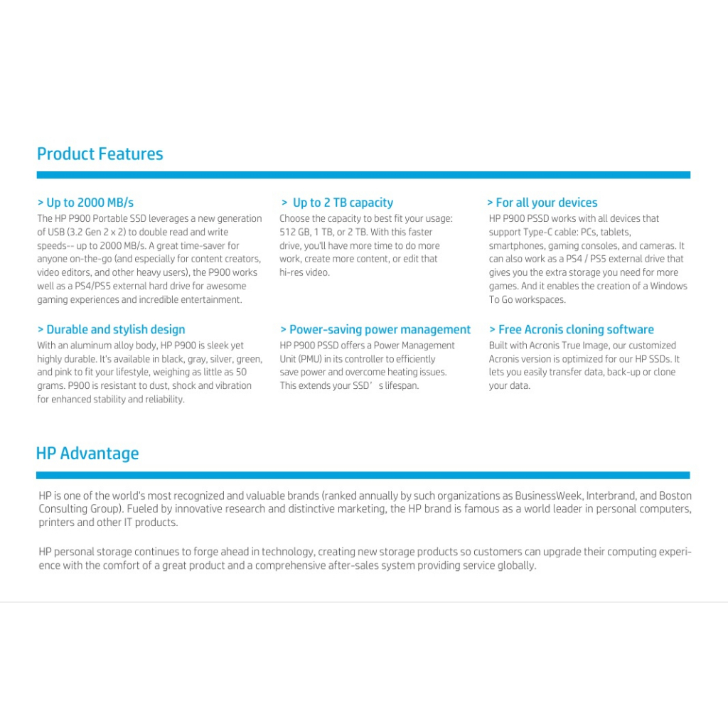 HP Portable External SSD P900 512GB/1TB/2TB Super Slim USB 3.2 Type-C New Launch