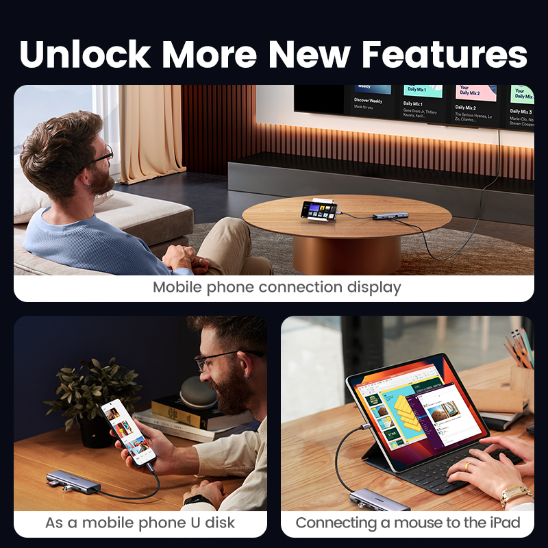 UGREEN 10 IN 1 Hub USB C Hub HDMI VGA Adapter 4k 30Hz USB C to USB 3.0 100W Fast Charging Dock For Macbook Pro Support SD TF Card and 1000Mbps RJ45 Port