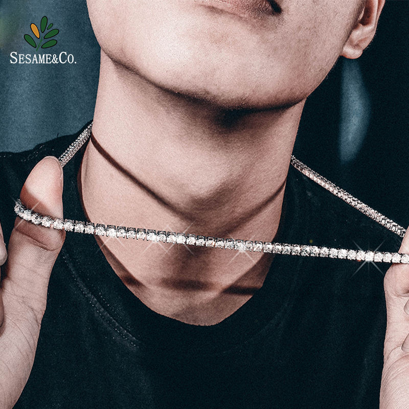 Custom Fashion Jewelry 22Inches DEF 3MM Round Moissanite Tennis Chain in Silver/10K/14K Prong Settin