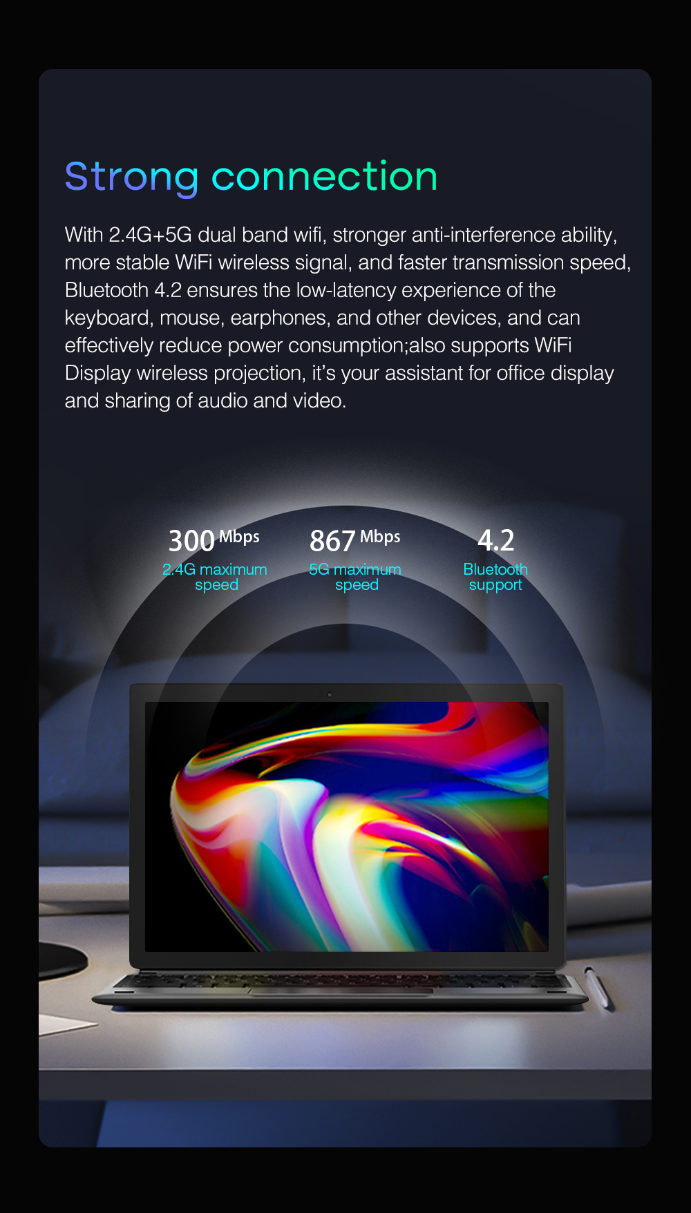 supports 2.4G+5GWIFI network, BT version 4.0, file transfer, Internet surfing, faster and more stable.