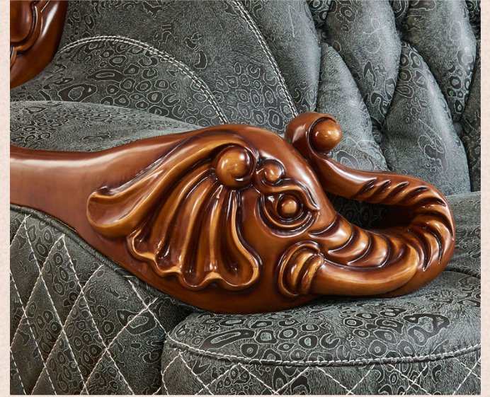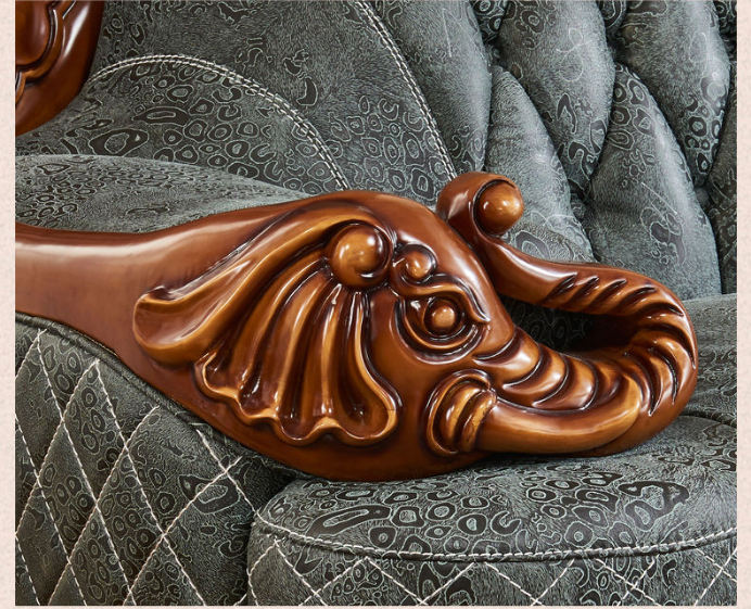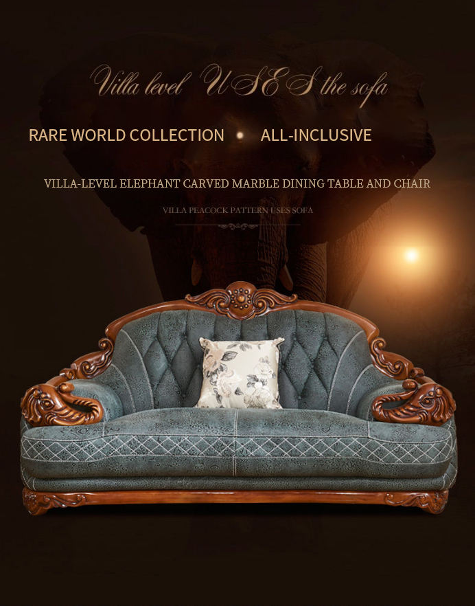 European-style sofa large apartment villa living room solid wood carved cowhide American sofa 123 co