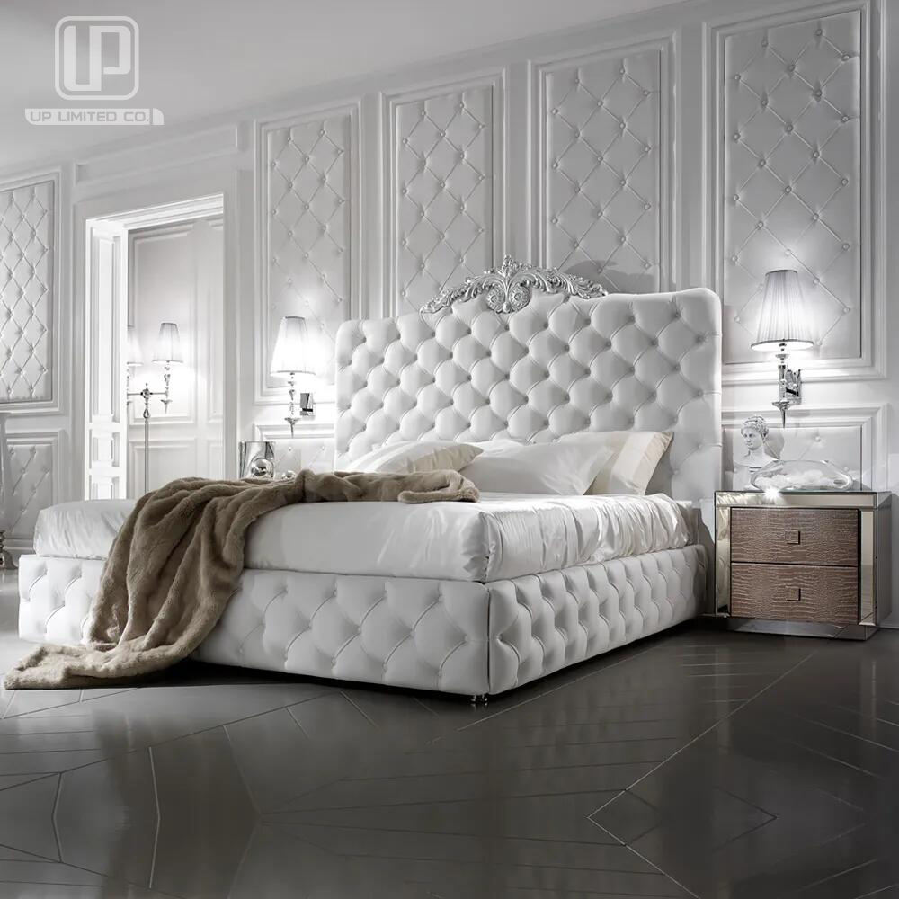 Exclusive Italian bed for designer White Leather Bed Classic bedroom furniture
