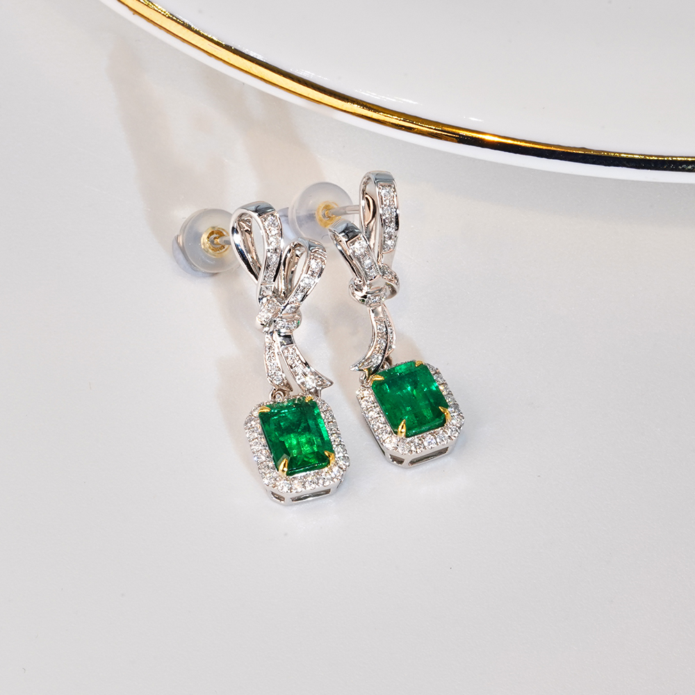 Genuine Gemstone Jewelry For Ladies 18K White Gold Drop Earring Natural Emerald Fine Jewelry Earring