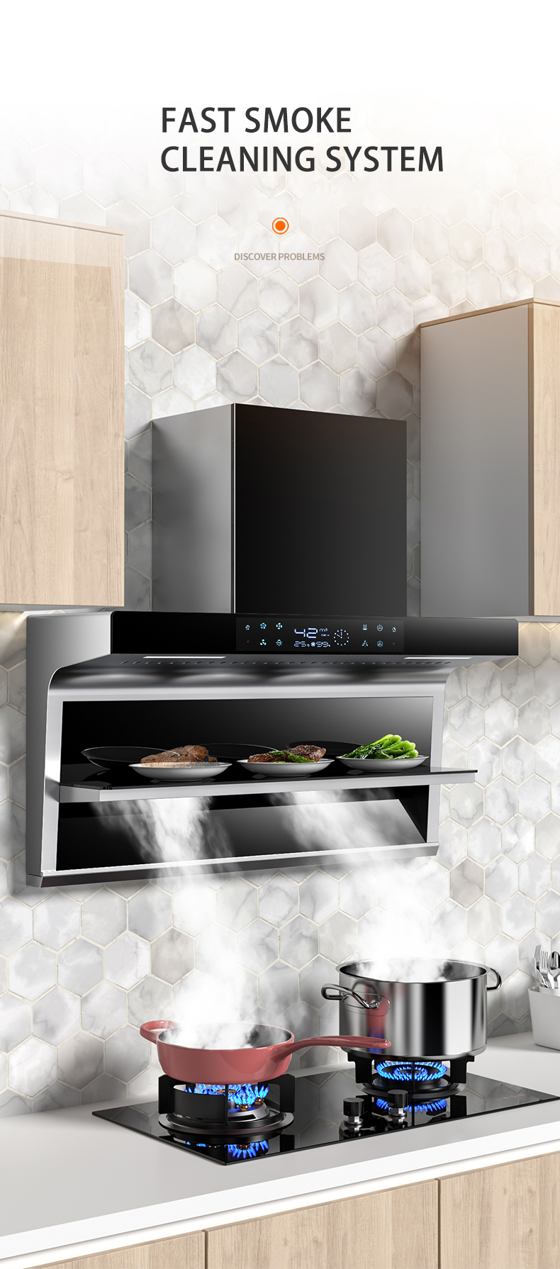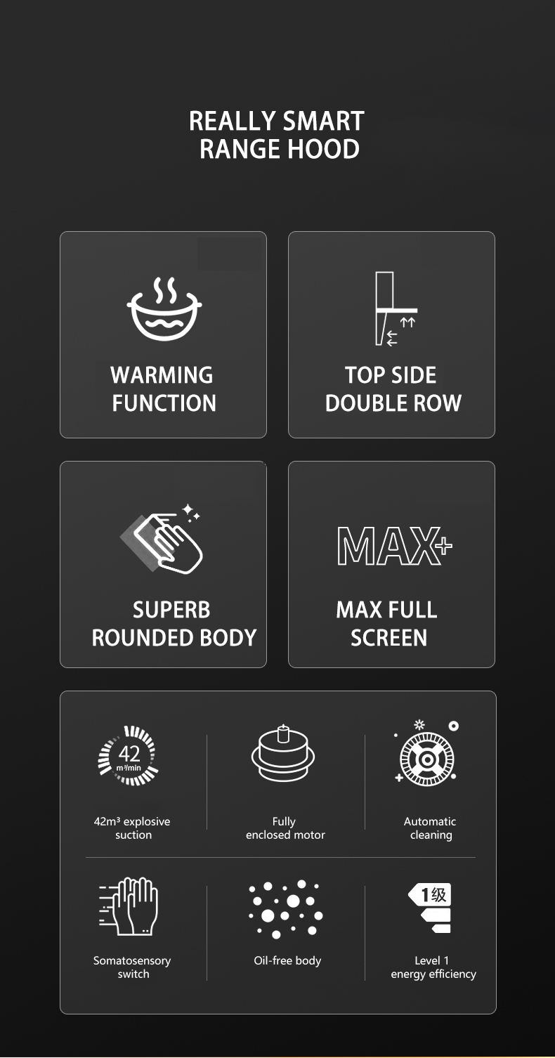 Home appliance kitchen Large suction top side double suction range hood 7-shaped