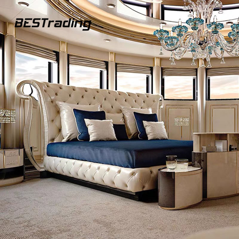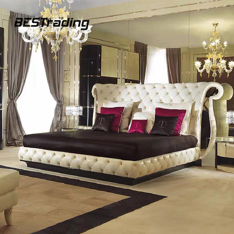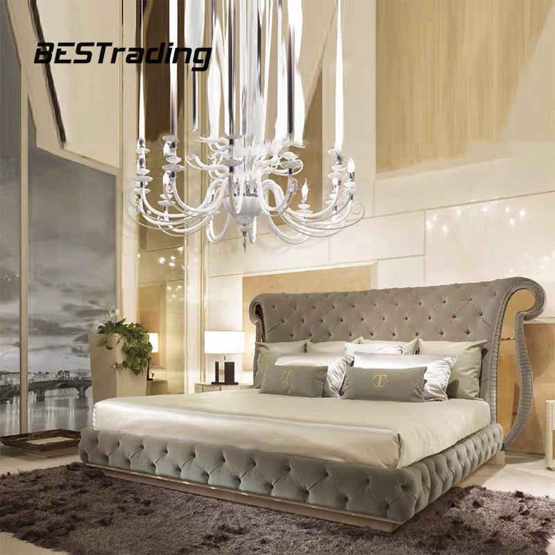 Luxury bed set furniture tufted velvet wood frame double bed king size bed