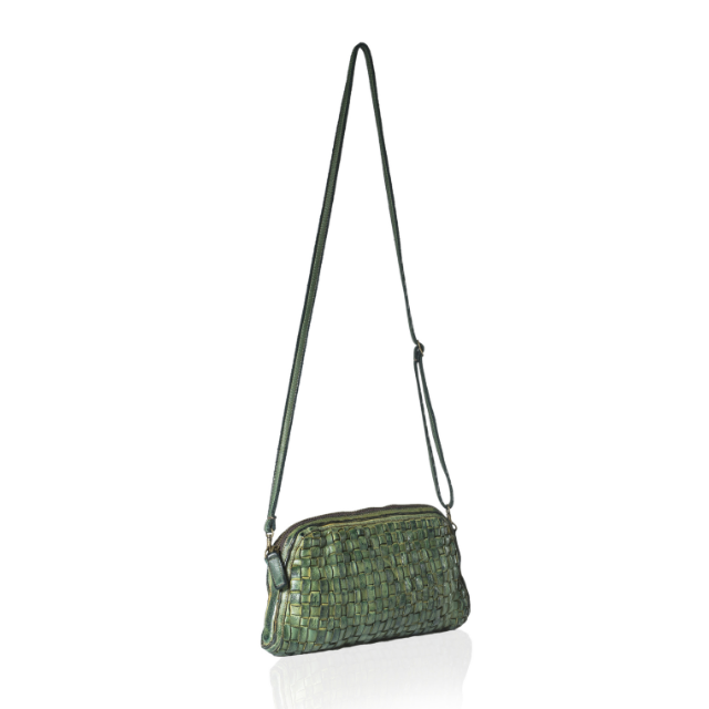 Made In Italy Handmade Zipper Closure Sage Green Color Real Genuine Leather Clutch Bag For Woman