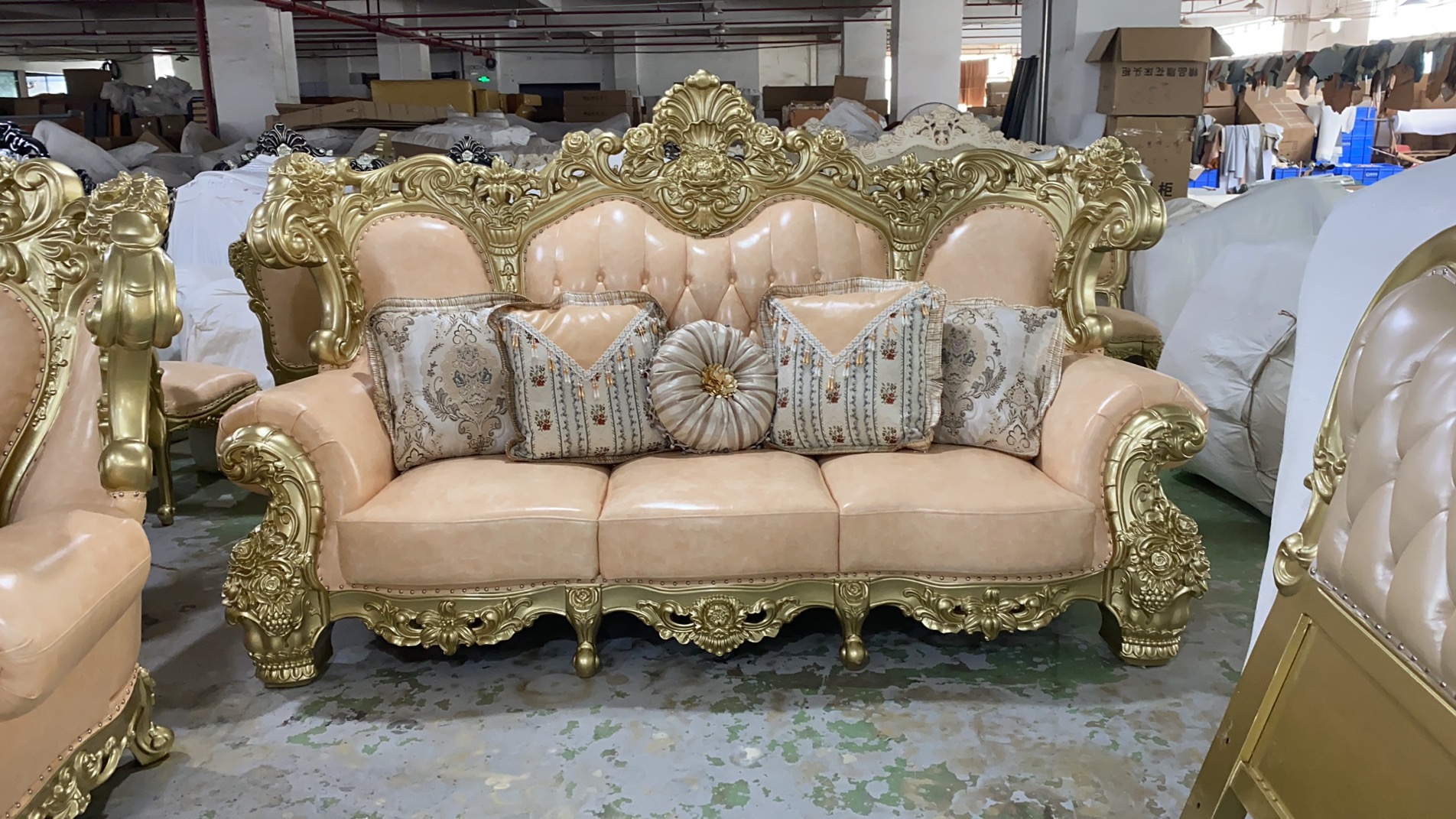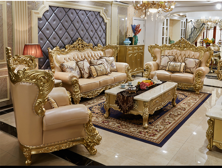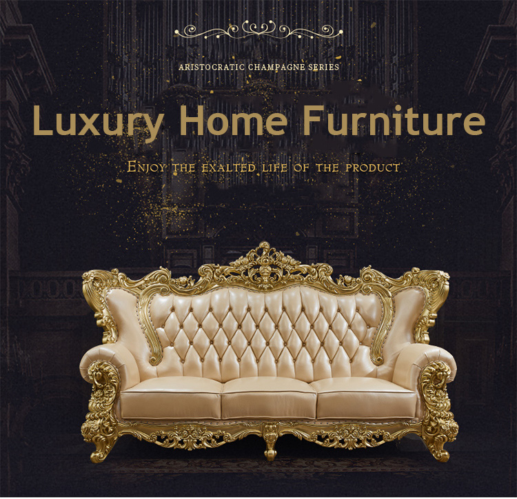 Royal Gold Home French Wood Living Room Sofa Set Other Antique Furniture Vintage Classic Wooden Anti