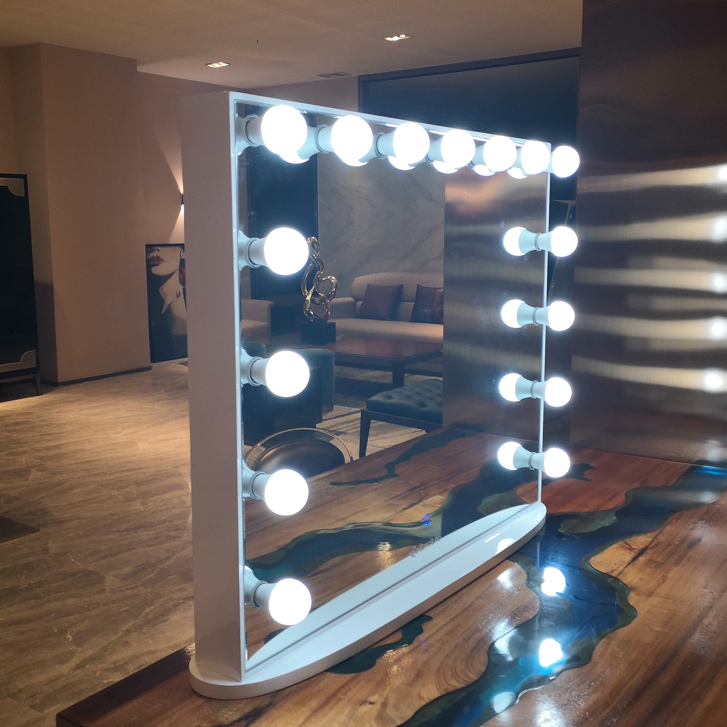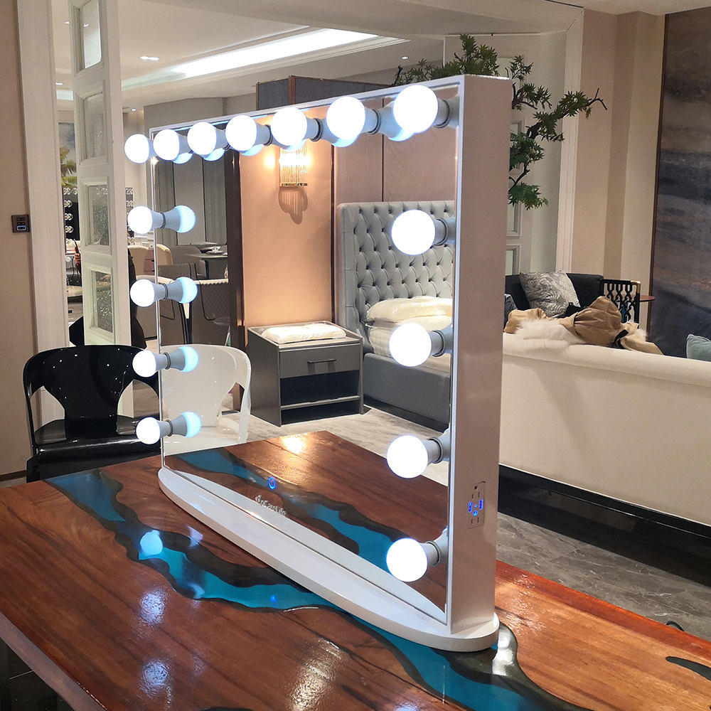 Stock in US! Docarelife 100*80cm Wooden Bedroom Furniture Dresser Hollywood LED Lighting Vanity Makeup Mirror